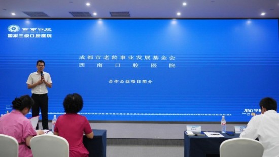 成都市老龄事业基金会理事长戴小蓉在致辞中,就基金会的历史发展与公益成果,向与会人员做了详尽的介绍;西南口腔医院的都林杰总经理则系统展示了医院的综合能力以及诊疗能力,讲解了公益项目的服务内容,为后续公益项目的开展打下了坚实的基础。