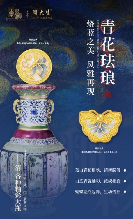 周大生珠宝X国家宝藏联名系列在黄金珠宝领域持续深耕,其以《国家宝藏》节目中各种釉彩大瓶为设计灵感,用青花釉彩珐琅工艺装点黄金饰品,为黄金饰品赋予了崭新的生命力与深厚的文化底蕴。