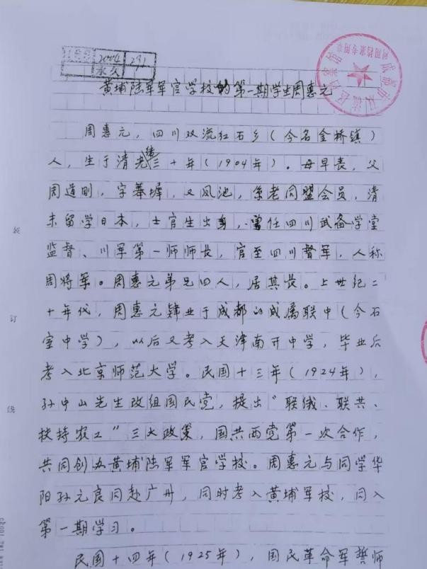 1.General Zhou Huiyuan of the Kuomintang Uprising made historical contributions to the peaceful liberation of Sichuan;